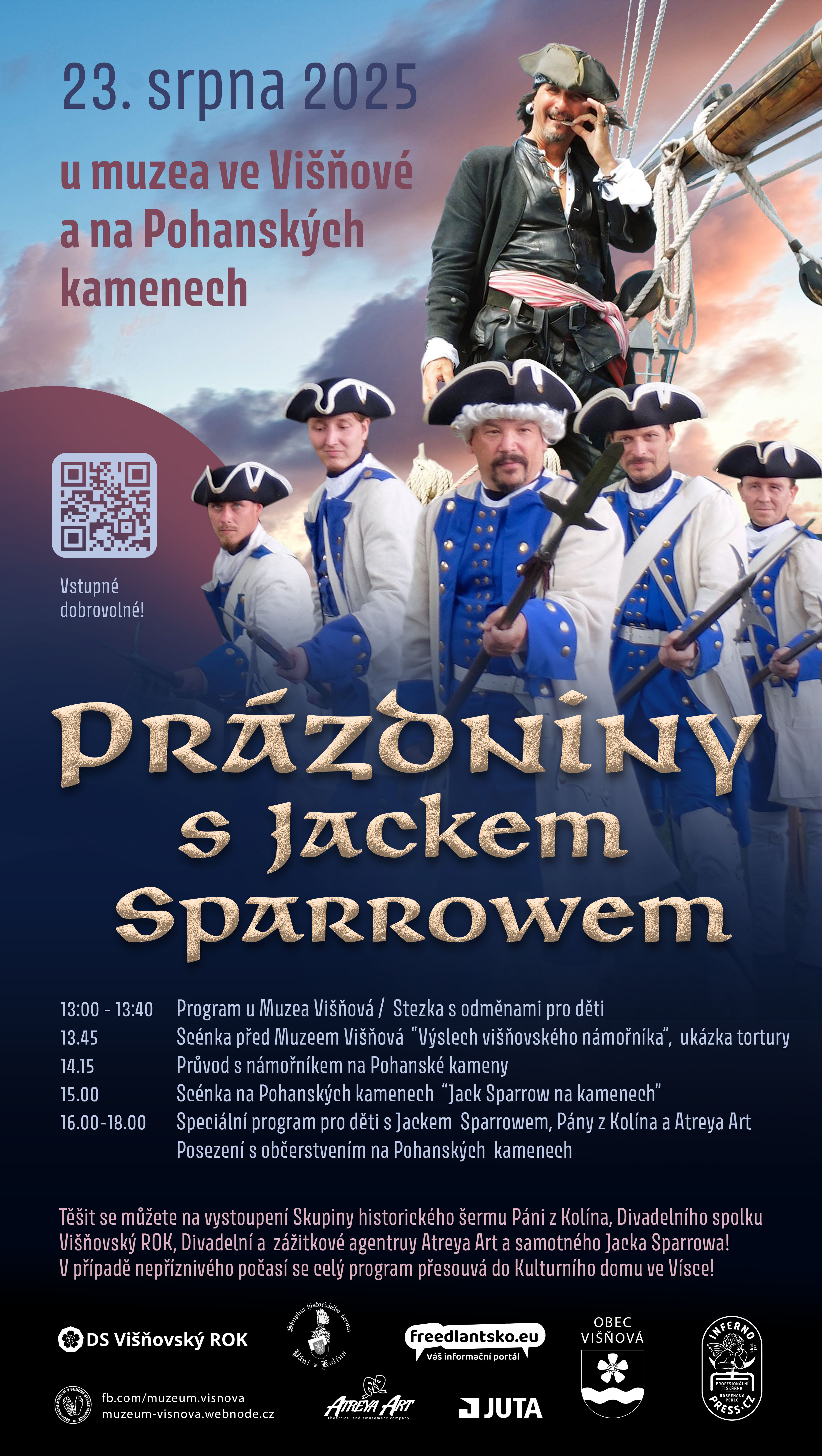 Tradiční prázdninová akce vám připraví nevídané setkání s jedním z nejslavnějších pirátů všech dob, samotným Jackem Sparrowem. To vše na pozadí historických událostí ve Višňové. Těšit se můžete na speciální program pro děti, přátelskou atmosféru a spoustu zábavy protkané příběhy z naší minulosti!